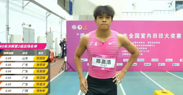 陈嘉浩成为中国男子短跑历史上第17位达到6秒60标准的选手。